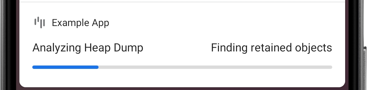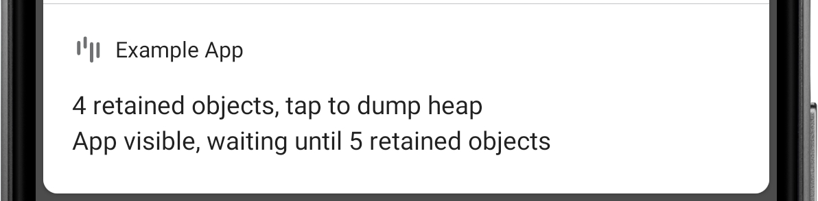 only 4 retained objects (< 5 while app visible)默认的阈值是当应用可见时保留5个对象,当应用不可见时保留1个对象。如果您看到保留对象通知,然后将应用程序置于后台(例如按下主页按钮),那么阈值从5变为1,LeakCanary会在5秒内转储堆。点击通知会迫使LeakCanary立即转储堆。